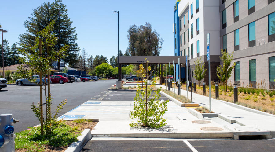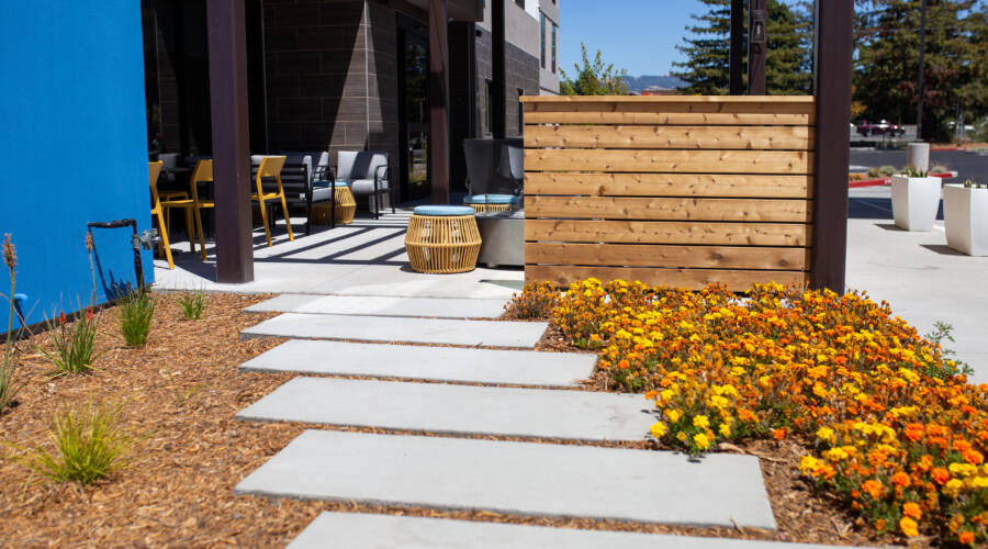 Redwood Lodging chose INTEGRA+ to bring their vision of a modernistic and new concept from Hilton Hotels to life in Rohnert Park. With input from the client, from the City of Rohnert Park and from a focus group, INTEGRA+ designed a drought tolerant landscape knowing that recycled (non-potable water) would be used on the property for the irrigation.